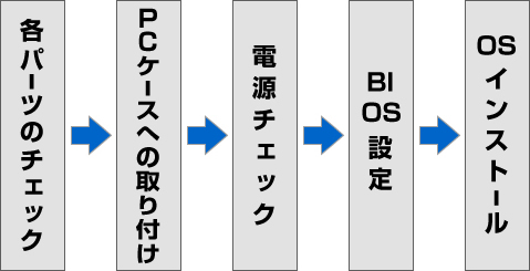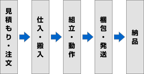 当店のBTOパソコンはご注文いただいてから、以下のような流れで納品されています。