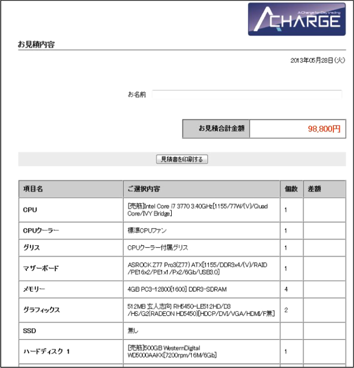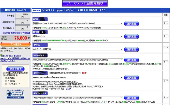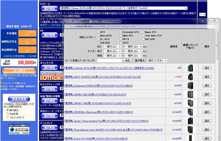 当店のホームページより、希望のスペックに近い商品から自動見積りページで自由にカスタマイズして申込みいただけます。