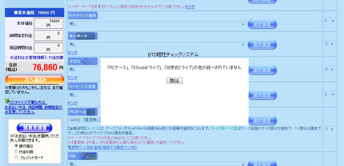 ポップアップでBTO相性チェックシステムのメッセージボードが表示されます。