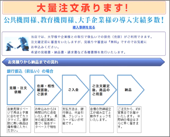 法人様、公官庁様、大学様向けに掛売りのご対応もいたします。