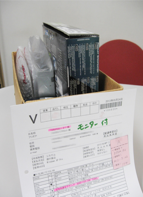注文が確定してから、PCケースに、CPUやマザーボード、メモリーなどを組み込み、動作チェックを行なってから発送します。