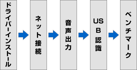 OSと各種ドライバーをインストールした状態から、45項目のチェックリストを元に、