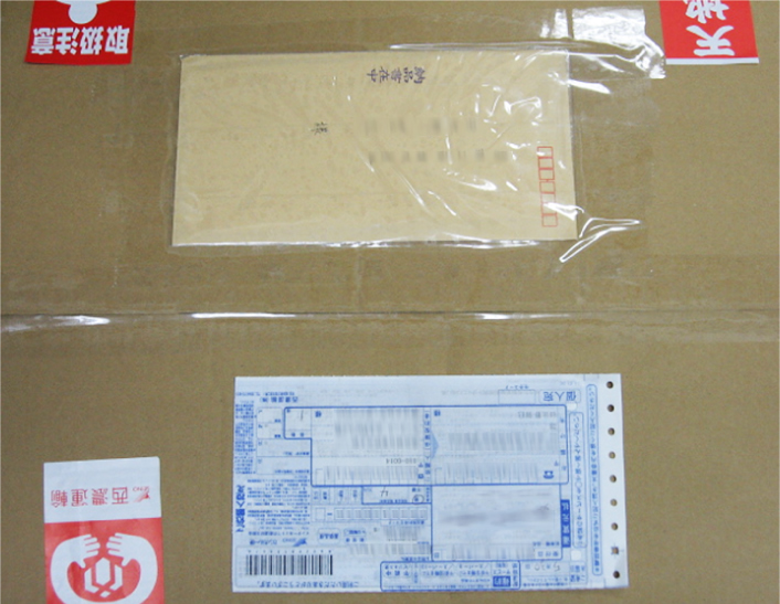 納品書などの書類を希望された場合はダンボールの上に張っています。