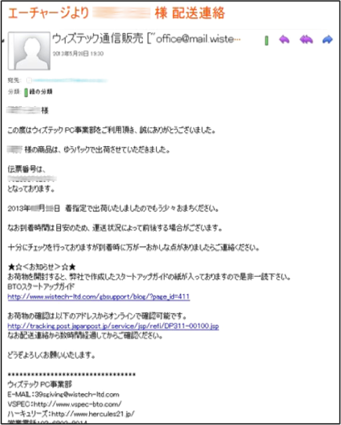 商品の発送当日の夕方頃にメールにて運送会社の配送伝票番号を記載したメールを送りしています。