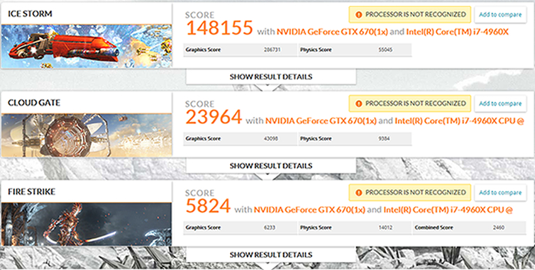 ICE STORMは元々モバイル用なので、デスクトップの頂上決戦にしては緩すぎるが、ここまでCPUの差が出るかとびっくりする。 最大の難関FIRE STRIKEの物理演算でも、700ポイントの差がついており、なかなかのパフォーマンスを見せつけてくれた。今回は都合により大したVGAを使っていないが、GeForce TITANなどを組み合わせたらきっと素晴らしい結果を見せてくれるだろう。ぜひあなたも手に入れ試してみてほしい。