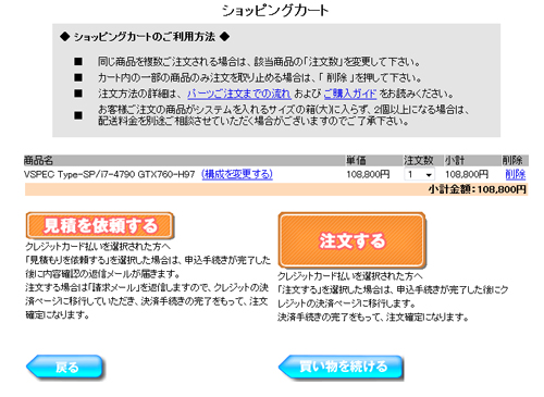 一緒に購入する商品が他にない場合、見積を希望する場合は「見積を依頼する」ボタン、注文を希望する場合は「注文する」ボタンを押してください。