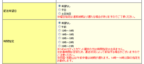 ▼ 必要に応じて「配送希望日」と「時間指定」を指定します。