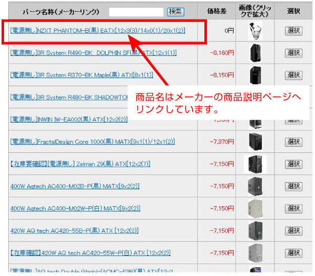 ▼別の方法として、以下のバナーをクリックするとPCケースの一覧リストが別ウインドウで表示されます。