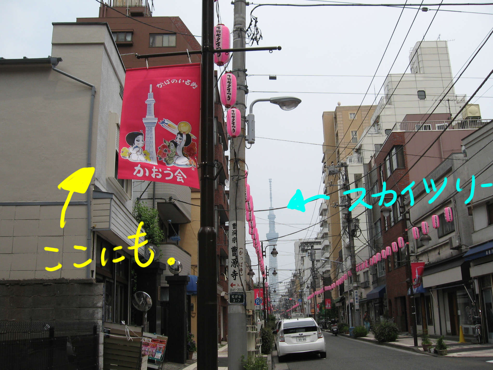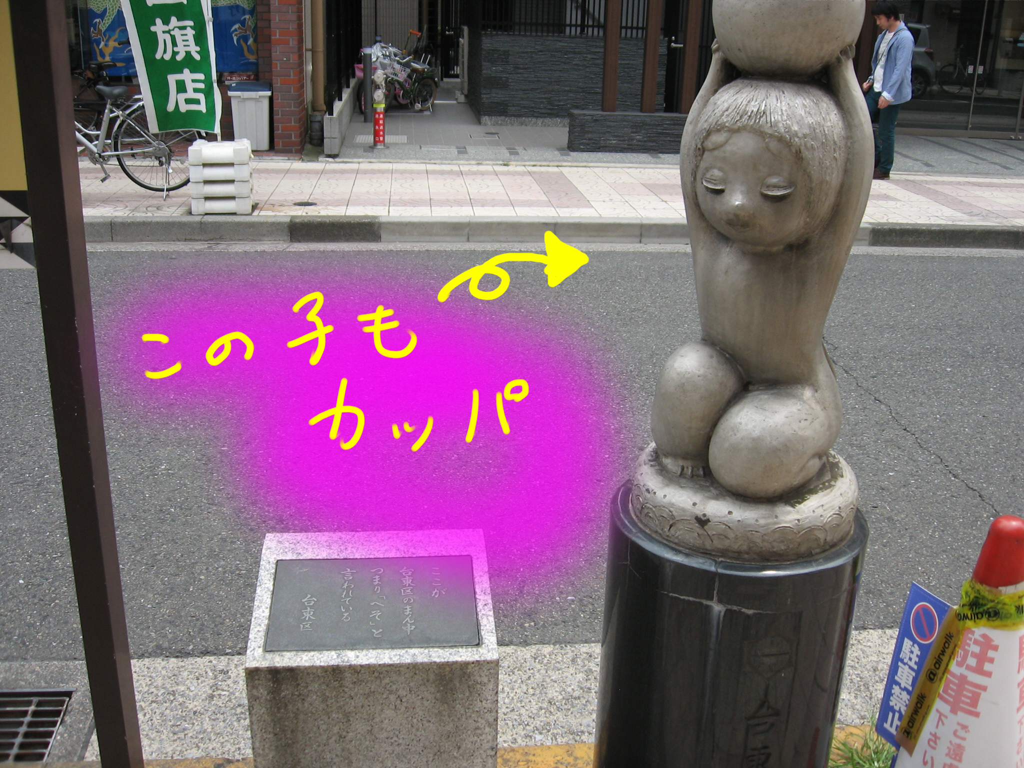 ↓かっぱ橋商店街が近くにあるので、かっぱの旗やかっぱの像がところどころにあるんですよ。