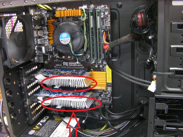 の氏の説明によると、静音仕様のファンレスのグラフィックボードや画像処理の速い、大きいグラフィックボードには大きなヒートシンクが付いているそうです。そして、弊社の場合、ヒートシンクの熱を逃がすため、ケースにサイドファンを付けているそうです。